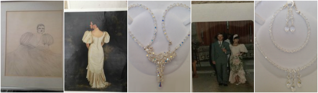 I have worked freelance and have been self-employed for many years, made many wedding dresses including my own ( as pictured) which I incorporated Vintage hand couched lace with fine pin tucks ( synonymous to me) which I have used on many of my designs from wedding dresses to bridesmaids, page boys and Christening gowns.